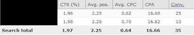 If, for example, we assume the value of each conversion is $50 each, which PPC Account has a better ROI? Microsoft adCenter is showing a Cost of $583.10 (CPA $16.66 x 35 Conversions) with a returning Value of $1750 (35 Conversions x $50 value per Conversion). That results in an ROI of $1166.90 ($1750 Value – $583.10 Cost).